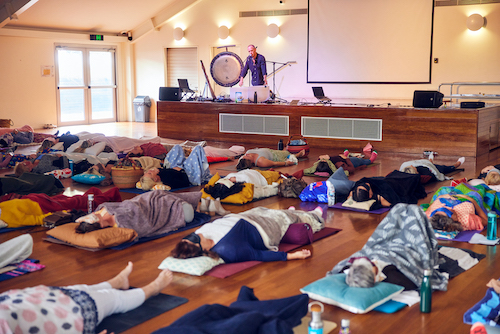 The practices are all done individually, it is a mixture of theory/learning and then a chance to meditate as a group and finally experience a full sound immersion with Matt at the end.
